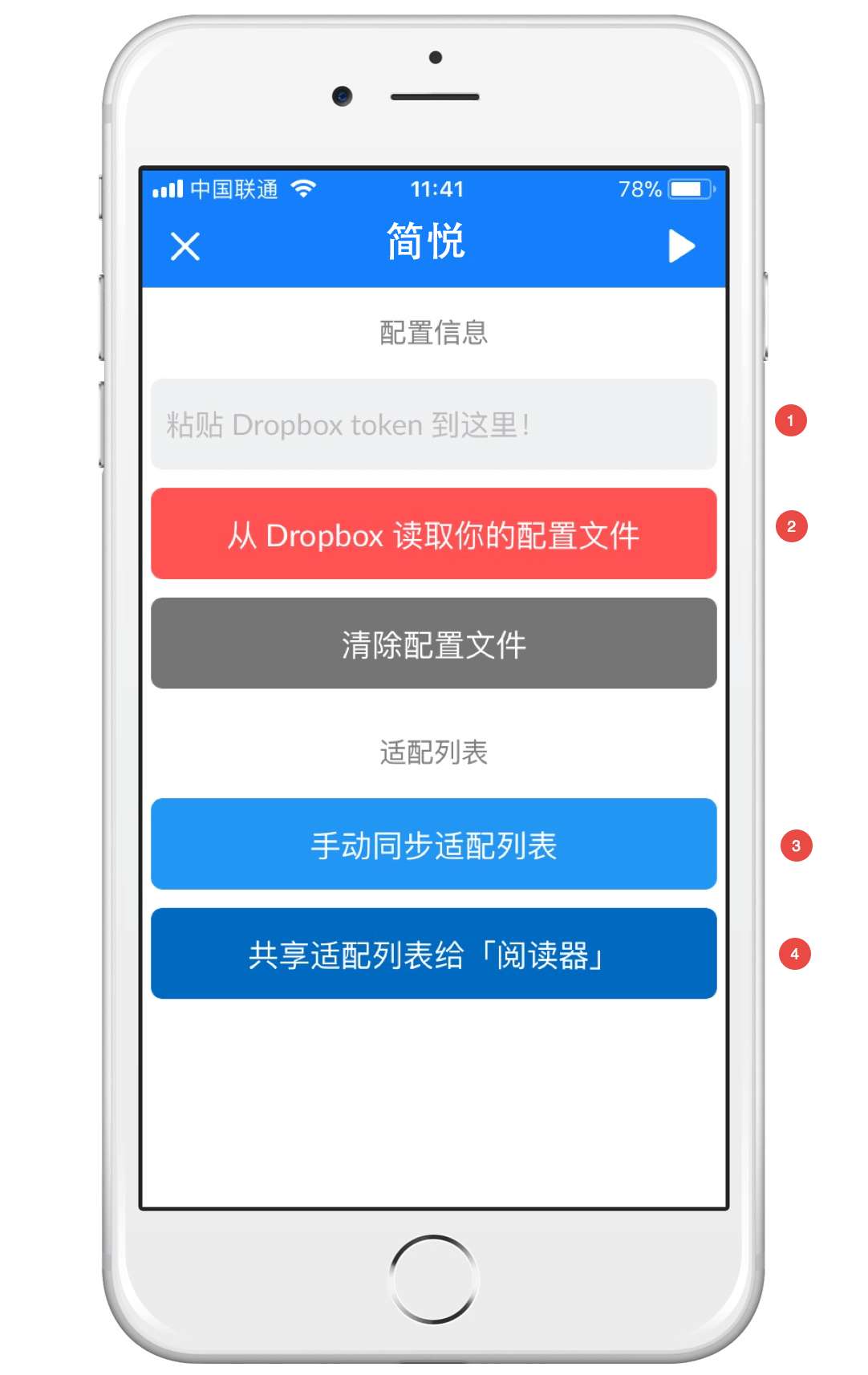 - 如果已安装「阅读器」的话,请点击 共享适配列表给阅读器 ;建议每次同步更新后都需要操作一次